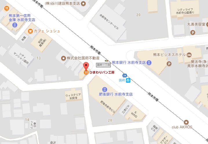 熊本市電の国府電停下車1分、肥後銀行側に降りる。